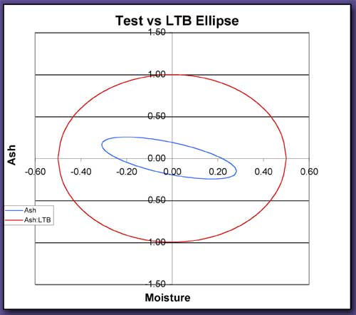 Test Elipse Lies Within Elipse Defined by Largest Tolerable Bias Values – No bias Detected in Measurement System